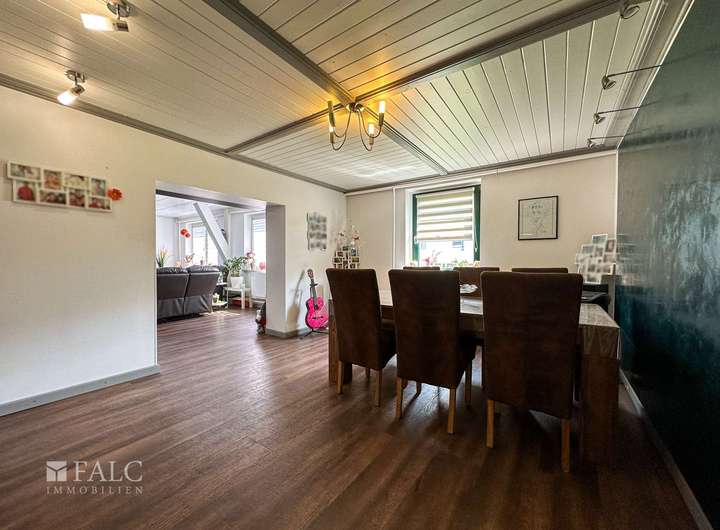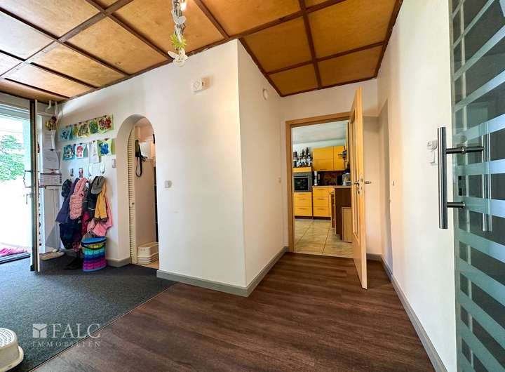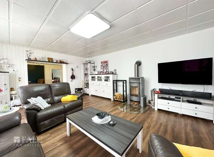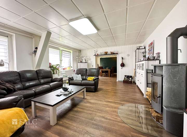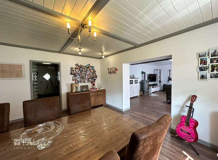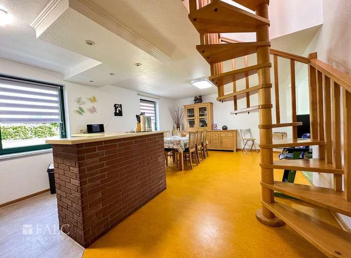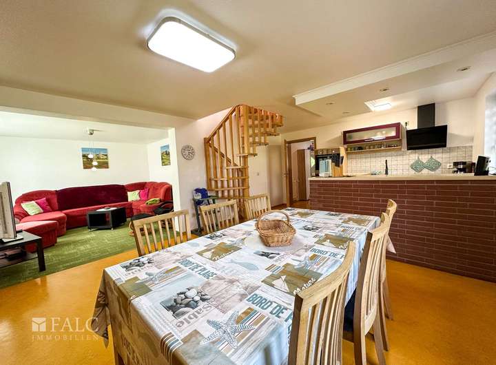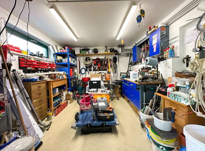 Das Haupthaus bietet dazu, mit ca. 166 m² Wohnfläche, einen angenehm großzügigen Wohnraum für die ganze Familie. Der zweite Wohnbereich, innerhalb der Immobilie, wird derzeit als Ferien-Wohnung genutzt. Die räumliche Trennung, durch einen als Garagenkomplex, mit Werkstatt und Heizungs-Technikraum, bietet den beiden Wohnbereichen jeweils Diskretion und Distanz.