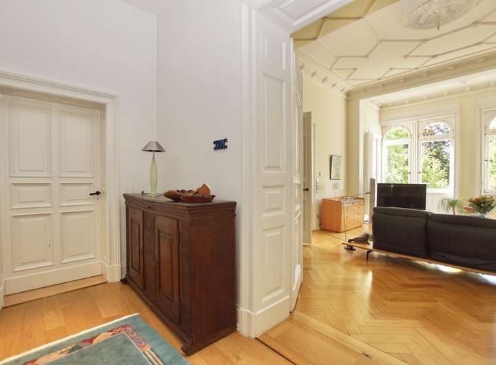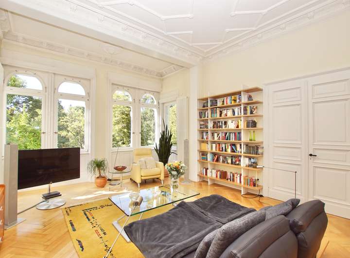 Prächtig steht die Villa mit ihrer reich verzierten Fassade im Nerotal. Die sanierte Gartenetage, die über einen separaten Eingang verfügt, bietet mit vier Zimmern und einer großen modernen Essküche ausreichend Platz zum Wohnen oder für eine gewerbliche Nutzung. Die Bel Étage ist eines der Highlights der Villa: Hochwertig saniert mit aufgearbeitetem Stuck, Holzflügeltüren, hohen Decken, offener Luxus-Küche, Ankleide, Holzfenstern, massiven und zum Teil noch originalen Holzböden einfach wunderschön. Die darüber liegende Wohnung verfügt ebenfalls über traumhaften Stuck, hochwertiger Parkettboden und ein luftiges Raumgefühl durch die fast vier Meter hohen Decken. Das 2. Obergeschoss ähnelt dem Grundriss der darunter liegenden Etage. Sie hat keine schrägen Wände und einen Südbalkon mit bestem Blick über den Park. Diese Etage ist ebenso wie das 1. Obergeschoss noch nicht saniert und z.Zt. vermietet. Das darüberliegende Dachgeschoss bietet vorbehaltlich der Genehmigung eine Ausbaureserve. Im Keller verfügt jede Partei über einen Abstellbereich.