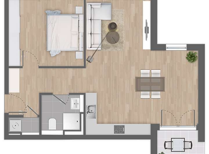 *Küchenaktion: Bei Kauf einer 1- bis 2-Zimmer-Eigentumswohnung bis zum 31.03.2026 erhalten Sie eine Küche inklusive.