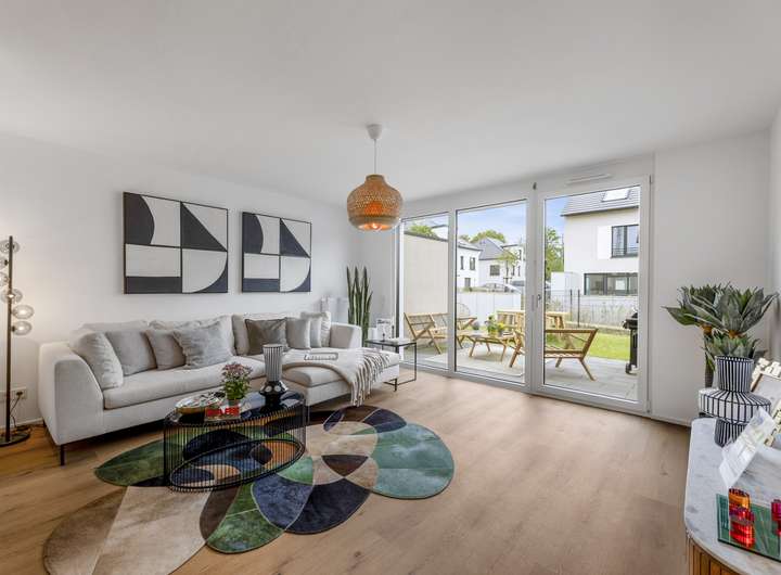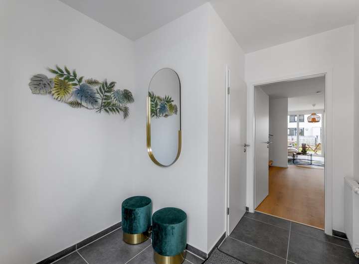 Jede Wohneinheit überzeugt durch hochwertige, stilvolle Ausstattung und clevere Details für deinen Alltag. Design-Vinylböden, elektrische Rollläden und moderne Sanitärelemente in den Bädern sorgen für echtes Wohlfühlambiente. Großzügige Wohnflächen, praktische Gartenboxen und vorgelagerte Schränke bieten dir extra viel Komfort und Stauraum.