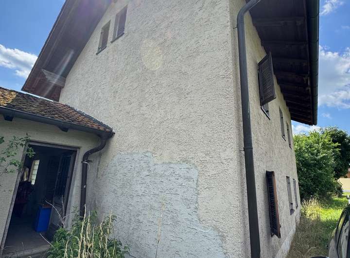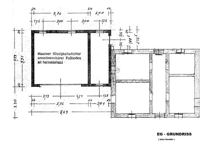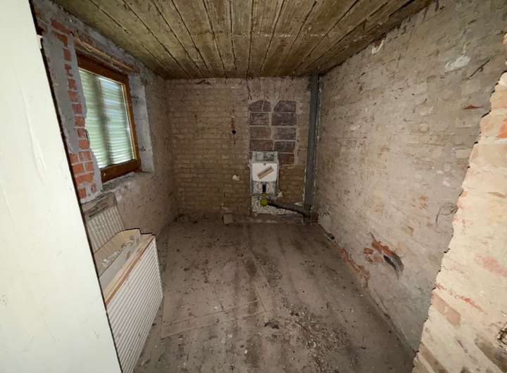 Das Haus befindet sich seit ca. 30 Jahren im unbeheizten Rohbauzustand und es sind u.a. keinerlei Bodenbeläge, keine Elektro- oder sanitären Leitungen gelegt.