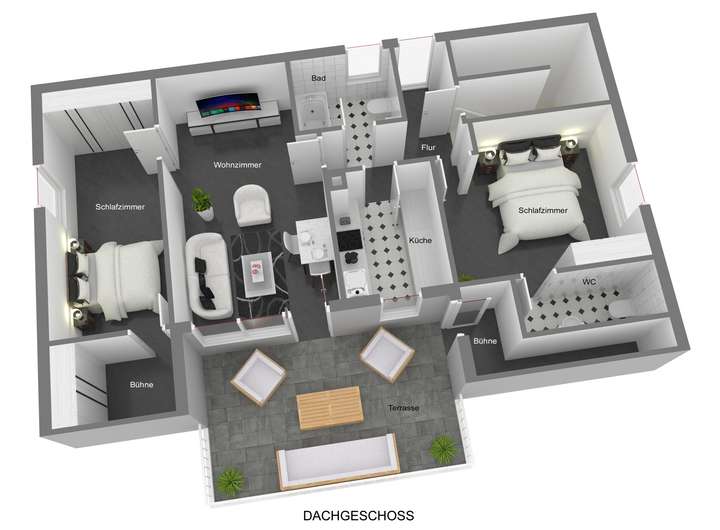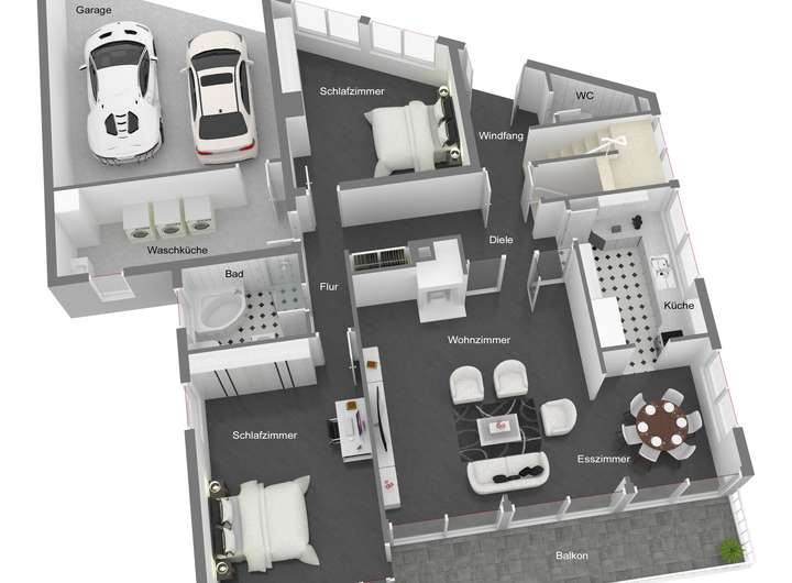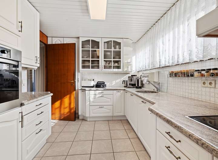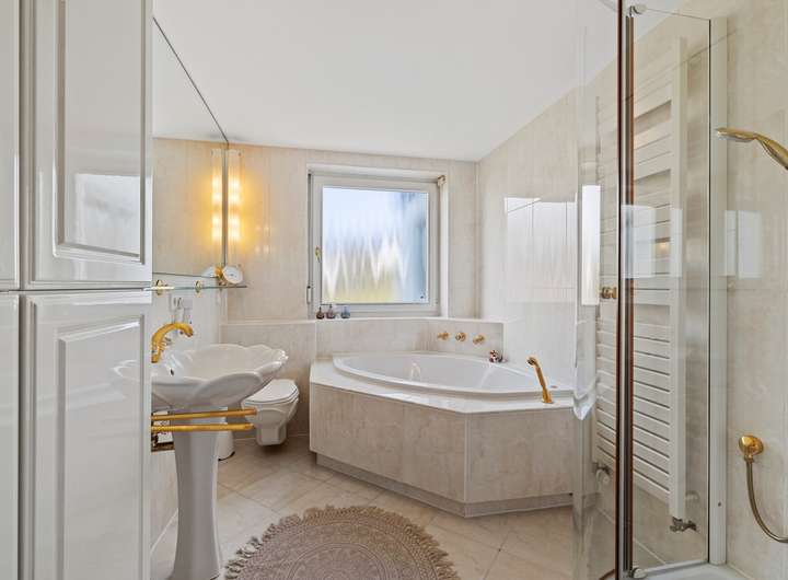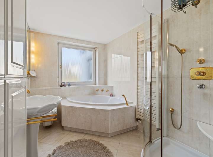 Die Villa bietet Ihnen insgesamt vier große Schlafzimmer, zwei stilvolle Wohnzimmer, zwei Badezimmer, zwei Einbauküchen und zwei Gäste-WCs. Die beiden Wohneinheiten sind sehr gut aufgeteilt in eine großzügige und helle 3-Zimmer-Wohnung im Erdgeschoss und eine lichtdurchflutete 3-Zimmer-Wohnung im Dachgeschoss mit Loggia.