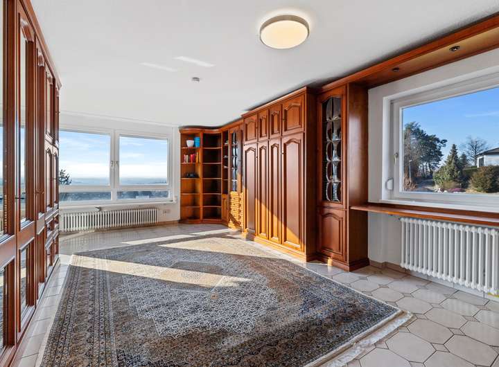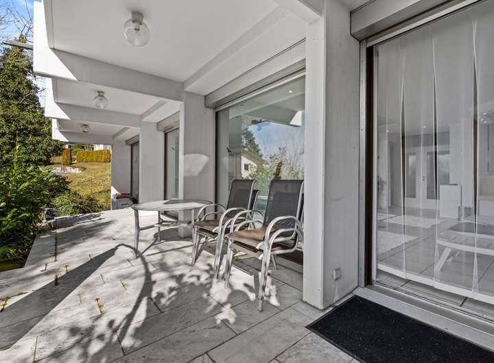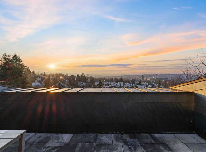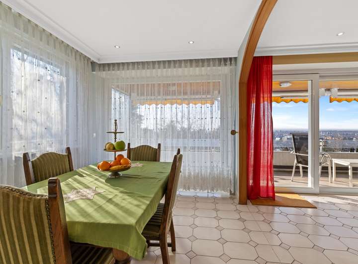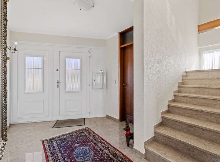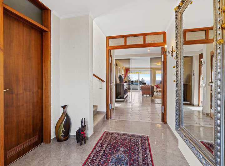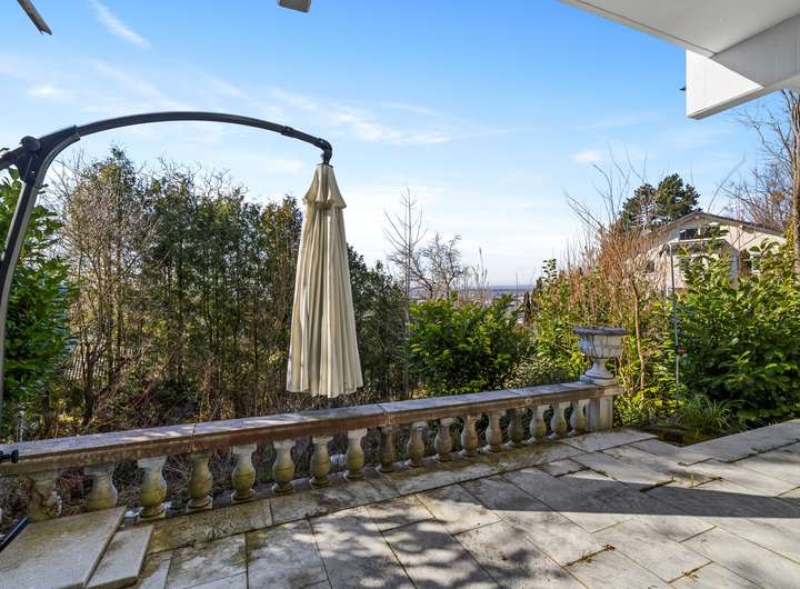 Die Villa besticht durch ihre phänomenale Aussicht und die ruhige, wunderschöne Umgebung. Eine großzügige Doppelgarage bietet ausreichend Platz für Ihre Fahrzeuge. Im Erdgeschoss lädt ein großer Balkon zum Verweilen ein, während im Dachgeschoss eine Loggia mit traumhaft schöner Aussicht auf Sie wartet. Beide Außenbereiche sind mit Markisen ausgestattet, die Ihnen an sonnigen Tagen Schatten spenden.