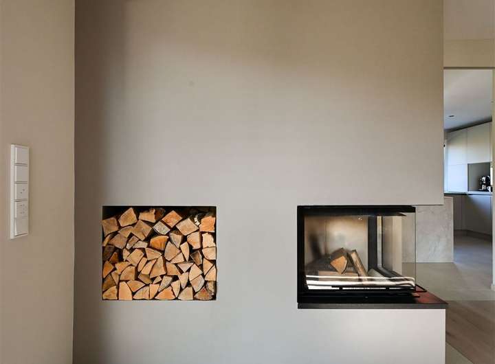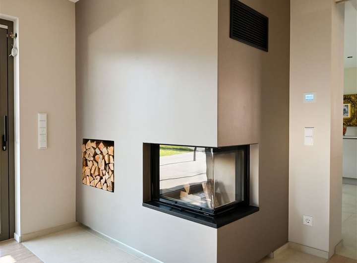 - Design-Panorama-Kamin im Erdgeschoss (Holz)