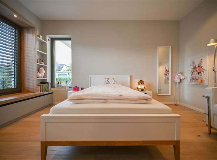 - Smart-Home-Steuerung (KNX-Bus) und CAT7-Verkabelung des ganzen Hauses (LAN), insbesondere Lichter, Heizung, Jalousien, Alarmanlage usw.