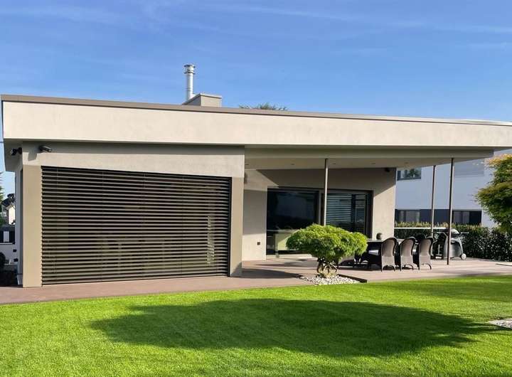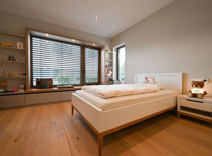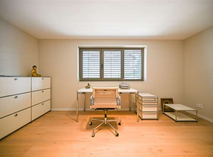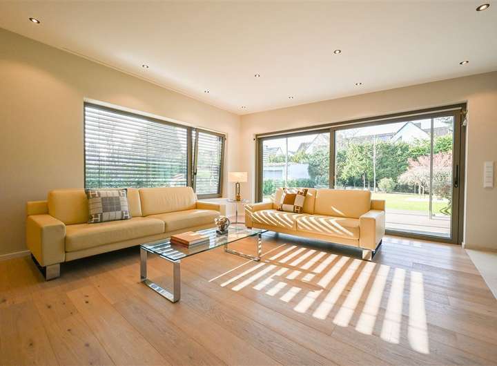 - 3-fach-verglaste und alarmgesicherte Holz-Fenster, zur Terrasse zudem Panzerverglasung (große Schiebeelemente), elektrische und programmierbare Jalousien
