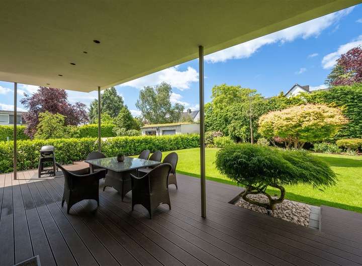 - Großes Grundstück mit 771 m² Größe und tollem Wohlfühlgarten (ca. 500 m²) und überdachte Gartenterrasse (ca. 51 m², 50% Wfl.)
