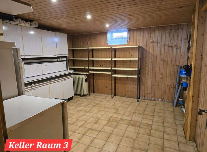 • Drei weitere Räume, einer davon mit Anschlüssen für eine zweite Küche (Wasser, Abwasser, Starkstrom vorhanden)