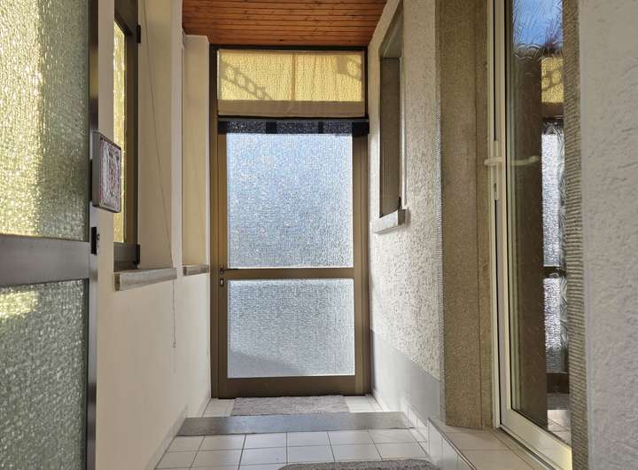 • Flur mit Glasschiebetür zum hellen Treppenhaus