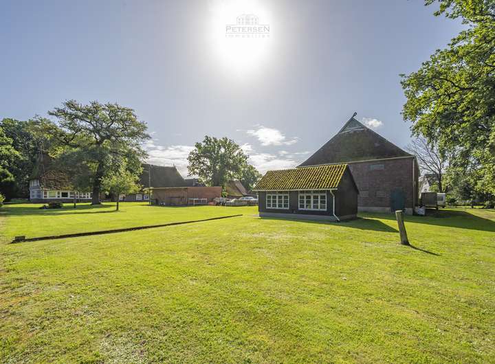 Willkommen in diesem einzigartigen und teils denkmalgeschützten Resthof zum Verkauf in Hamburg – eine seltene Gelegenheit, Geschichte und Moderne auf einer großzügigen Fläche mit großem Garten und altem Baumbestand zu vereinen. Das Bauernhaus und die alte Scheune, jeweils Baujahr 1770 sind zur Straße gelegen und bilden das denkmalgeschützte Entrée zur Hofstelle.