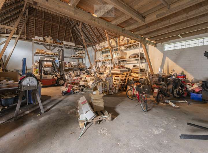 * Neue Scheune mit Unterstand: Massivbau mit Holzkonstruktion, Baujahr 1800/1938, 315 qm Lagerfläche inkl. Nebenräume, gewerblich vermietet als Baustofflager