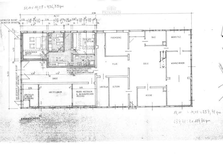 Das Wohnhaus bietet 292 qm Wohnfläche und beinhaltet eine separate Einliegerwohnung von 78 qm, die derzeit befristet vermietet ist. Die dahinterliegenden Gebäude sind nicht denkmalgeschützt: