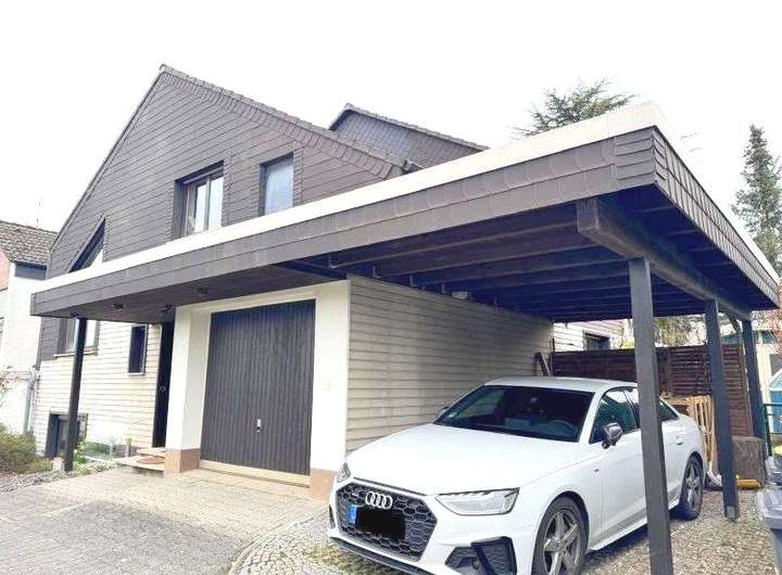 Zu dem Haus gehört eine Einzelgarage und ein Carport.