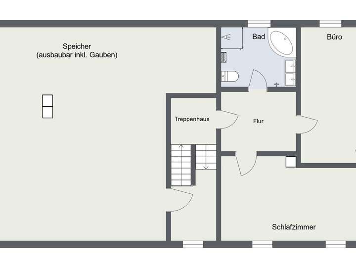 • Dachgeschoss und Obergeschoss mit sehr guter Grundsubstanz für Ausbau / Umstrukturierung