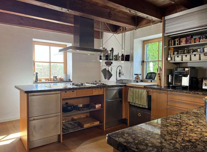 Dieses liebevoll modernisierte Bauernhaus (Baujahr ca. 1850, letzte Sanierung 2012 und 2021) vereint historischen Charme mit zeitgemäßer Technik und viel Platz für vielfältige Lebens- und Arbeitsmodelle. Mit knapp 600 m² Wohn-/Nutzfläche und einer großen, vielseitigen Scheune eignet sich die Immobilie perfekt für Mehrgenerationen, Wohnen & Arbeiten unter einem Dach oder kreative Nutzung (Atelier, Praxis, Kanzlei). Der gepflegte Garten mit 2.000 qm und altem Baumbestand, Pool (11 × 4,5 m) und zwei Terrassen bietet hohe Lebensqualität. Die nördliche Hauptterrasse sorgt im Sommer für angenehm kühle Aufenthalte. Im Dachgeschoss sind Gauben genehmigungsfähig - so lässt sich zusätzlicher Wohnraum gewinnen.