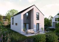 Auf zwei Ebenen vereint dieses Haus durchdachte Planung mit markantem Design. Die Fassade spielt mit Symmetrien und verleiht dem Baukörper eine besondere Präsenz, während der überdachte Eingang einen geschützten, einladenden Empfang schafft. Im Erdgeschoss öffnet sich die Diele zu einer klar gegliederten Raumfolge: Hauswirtschaftsraum und Gäste-WC sind dezent platziert, ein separates Büro bietet Rückzug für konzentriertes Arbeiten. Herzstück ist der offene Wohn-, Ess und Kochbereich, in dem großzügige Flächen und fließende Übergänge das Miteinander zum Erlebnis machen. Im Dachgeschoss sorgt die clevere Grundrissgestaltung für große Räume und einen bewusst klein gehaltenen Flur. Zwei helle Kinderzimmer, ein Elternschlafzimmer und ein komfortables Bad mit Wanne und Dusche schaffen Platz für alle Lebensphasen. Mit 149 m² bietet dieses Haus Raumqualität, die inspiriert - funktional, großzügig und im Detail präzise gestaltet.