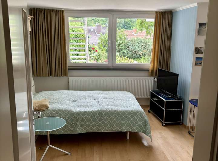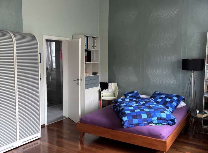 * Großzügiges Schlafzimmer im Obergeschoss mit eigenem, 2019 vollständig sanierten Bad und Balkon