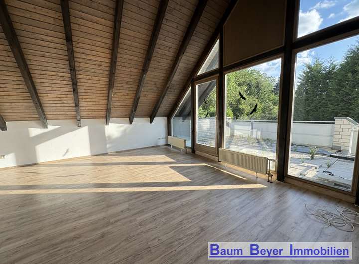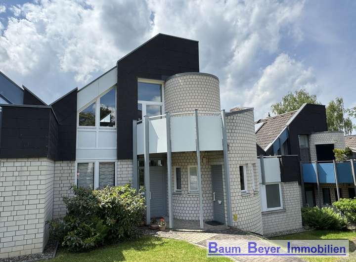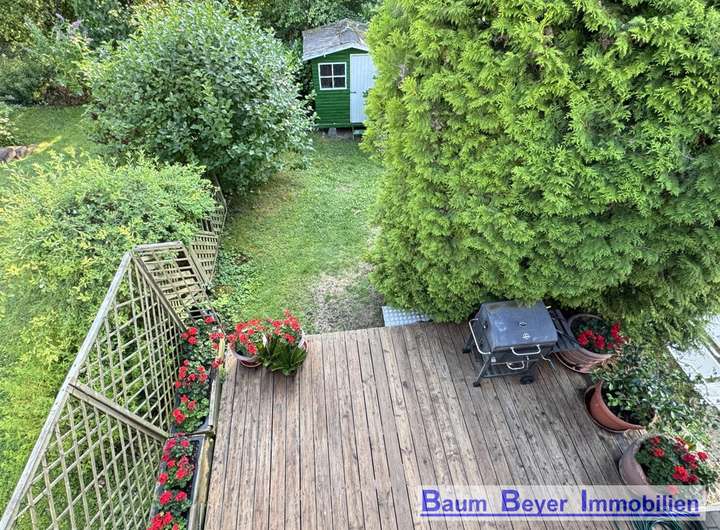 Dieses außergewöhnliche Zweifamilienhaus besticht durch die besondere Architektur. Die größere Wohneinheit erstreckt sich über das Erdgeschoss und Gartengeschoss. Auf der Eingangsetage befinden sich ein Wohn- und Esszimmer mit Zugang zur Terrasse, ein Gäste-WC, eine moderne Küche sowie ein Abstellraum. Über eine Treppe gelangt man in das Gartengeschoss, das in zwei Kinderzimmer, ein Schlafzimmer, zwei Abstellräume, ein Duschbad sowie ein Tageslichtbad mit Badewanne und Dusche aufgeteilt ist. Die kleinere Wohnung ist über einen Treppenturm erreichbar und erstreckt sich über die oberen Etagen. Dort befinden sich ein Schlafzimmer, ein Gäste-WC, ein Tageslichtbad mit Badewanne, ein Heizungsraum sowie zwei Balkone. Das Dachgeschoss beeindruckt durch ein großzügiges Wohn-Esszimmer mit offener Küche, einem Abstellraum und zwei weitere Balkone. Die Holzdecken, die Dachschrägen, die vier Balkone sowie der eingewachsene Garten mit Blick ins Grüne verleihen dem Haus ein besonderes Flair. Zu dem Haus gehören eine Garage sowie ein Stellplatz. Bei den Balkonen wurden Undichtigkeiten festgestellt, weshalb eine Sanierung erforderlich ist. Durch eine Überbauung der Balkone können Sie die Wohnfläche vergrößern und Ihren Wohntraum realisieren.