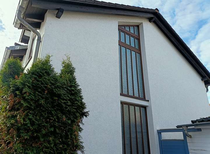 Das Haus verfügt über gemütliche Dachgauben und eine verglaste Treppenhausfront. Das Bad und Gäste WC verfügen jeweils über ein Fenster.