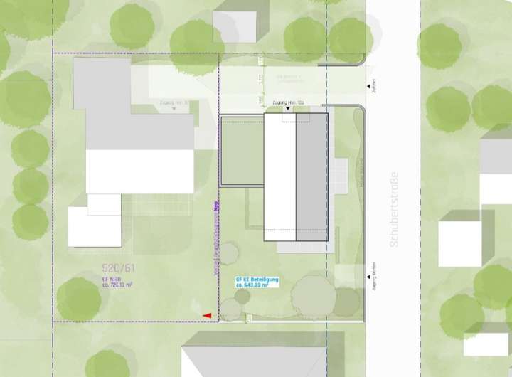 Die tollen Nachbarn sind schon da, es gibt eine gemeinsame Zufahrt im Norden, der Nachbar hat hier das Leitungswasser- und Wegerecht.