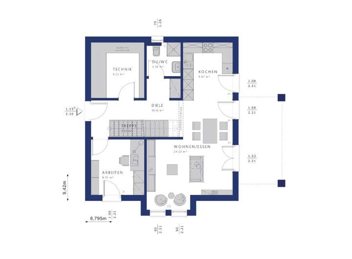 Mit der Ausbaustufe "Schlüsselfertig" bieten wir Ihnen ein Rundum-sorglos-Paket. Im Preis enthalten sind sämtliche Bauleistungen, vom Rohbau bis hin zum Innenausbau. Dies bedeutet für Sie einen reibungslosen Bauablauf, bei dem Sie sich um nichts kümmern müssen. Gleichzeitig erfüllen wir sämtliche Anforderungen des staatlichen Qualitätssiegels für Nachhaltigkeit, was Ihnen nicht nur ein zukunftssicheres Zuhause garantiert, sondern auch die Möglichkeit eröffnet, von attraktiven Förderungen der KfW zu profitieren. So wird der Bau Ihres Traumhauses zu einem komfortablen und entspannten Erlebnis.