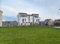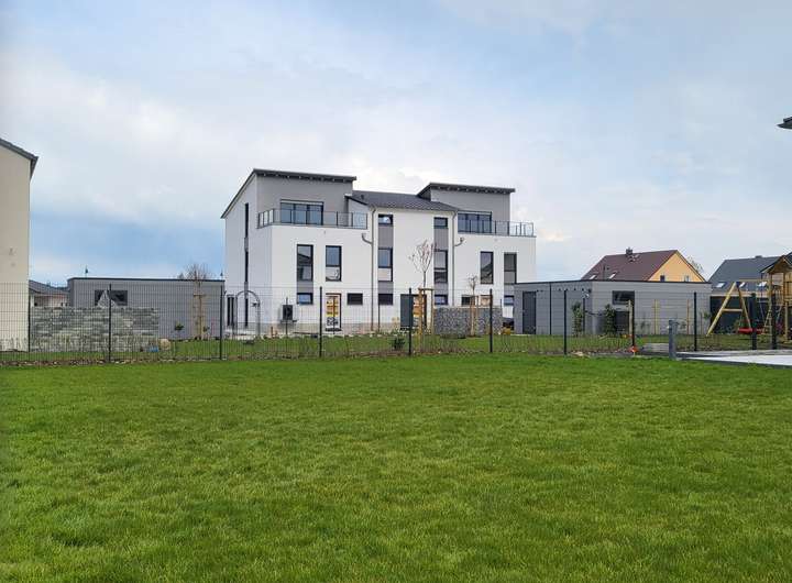 Man kann das Grundstück mit einem großzügigen Einfamilienhaus, mit Doppelhaus oder mit einem kompakten Mehrfamilien haus bebauen.