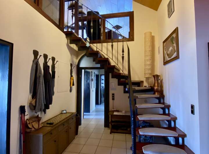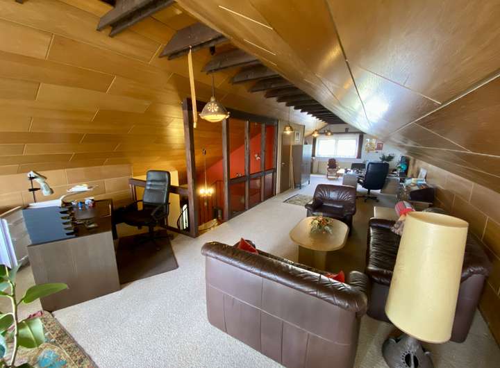 Im Obergeschoss befindet sich ein offener Wohnbereich mit Zugang zur Loggia, der ideal als Leseecke, Atelier oder zusätzlicher Rückzugsort genutzt werden kann.