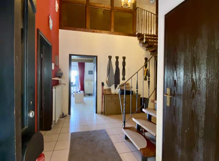 Bereits beim Betreten des Hauses zeigt sich die durchdachte Architektur. Das Erdgeschoss umfasst ein großzügiges Wohnzimmer mit Kamin und offenem Essbereich, eine Küche, ein Tageslichtbad, ein separates Gäste-WC sowie drei weitere Zimmer, die flexibel als Schlafzimmer, Büro oder Hobbyräume genutzt werden können. Das aktuelle Schlafzimmer ist klimatisiert. Ein besonderes Highlight ist die Galerie im Eingangsbereich, die für ein luftiges Raumgefühl und zusätzliche Gestaltungsmöglichkeiten sorgt.