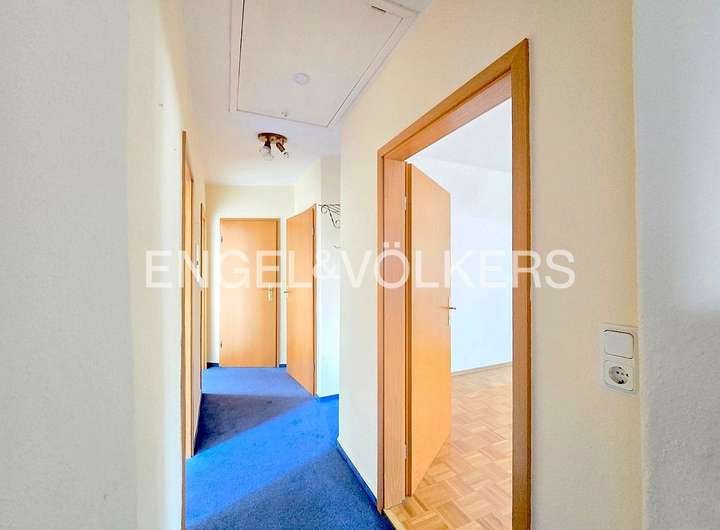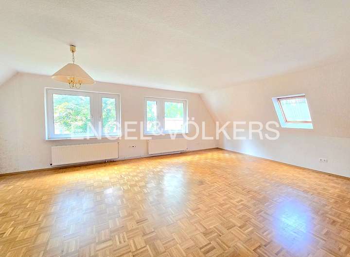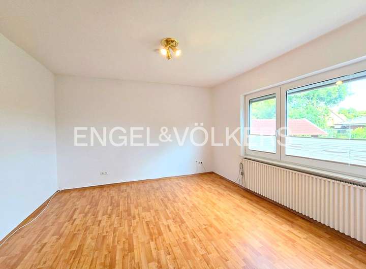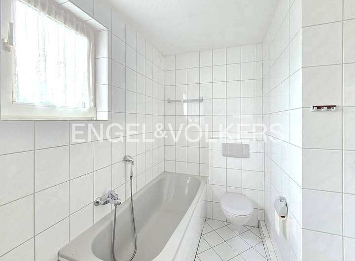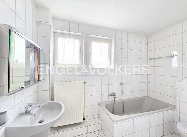 Die Wohnung im Obergeschoss bietet ca. 81 m² Wohnfläche. Auch hier stehen Ihnen drei geräumige Zimmer, eine Küche mit Einbauküche sowie ein Tageslichtbad mit Wanne zur Verfügung. Die klare Aufteilung beider Einheiten ermöglicht sowohl eine getrennte Nutzung als auch die Kombination zu einem großzügigen Einfamilienhaus. Bei getrennter Nutzung müsste noch eine Wand im Eingangsbereich eingezogen werden.
