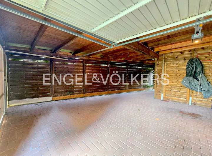 Die Ausstattung des Hauses umfasst unter anderem Fliesen, Teppich- und Parkettböden, doppelverglaste Kunststofffenster aus 1975 und 2016, elektrische Außenrollläden sowie eine großzügige Doppelgarage mit elektrischem Tor. Der Außenbereich bietet neben der Terrasse auch einen großen Garten mit vielfältigen Nutzungsmöglichkeiten.