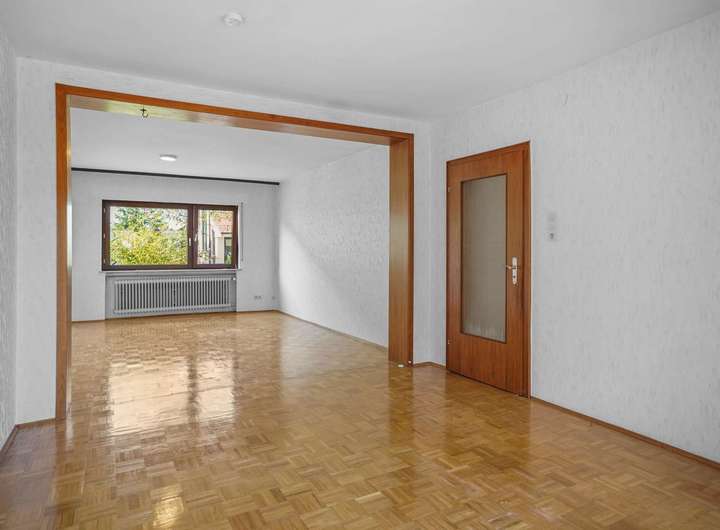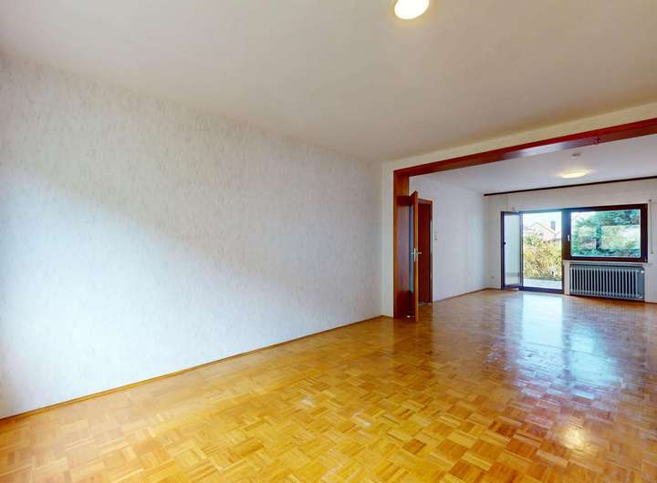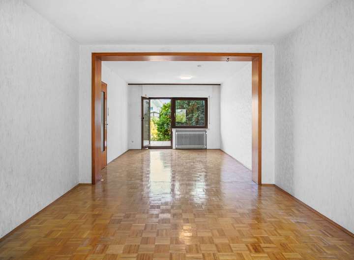 o Großzügiges Wohn- und Esszimmer (ca. 33,6 m²) mit Zugang zur ca. 23 m² großen Terrasse und in den Garten