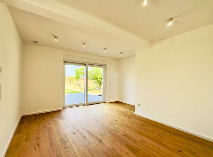 Der Eingangsbereich führt Sie in den offen gestalteten Ess- und Küchenbereich, der durch großzügige Fensterflächen viel Licht erhält und direkten Zugang auf die Terrasse bietet. Die Küche ist funktional eingebunden und ermöglicht einen angenehmen Alltag in familiärer Atmosphäre. Angrenzend, jedoch räumlich abgetrennt, befindet sich der separate Wohnbereich, der ebenfalls über einen eigenen Zugang zur Terrasse verfügt. Eine gerade verlaufende Treppe verbindet diesen Bereich direkt mit dem Obergeschoss. Ein Schlafzimmer im Erdgeschoss sowie ein hochwertig ausgestattetes Duschbad runden das Angebot dieser Ebene ab.