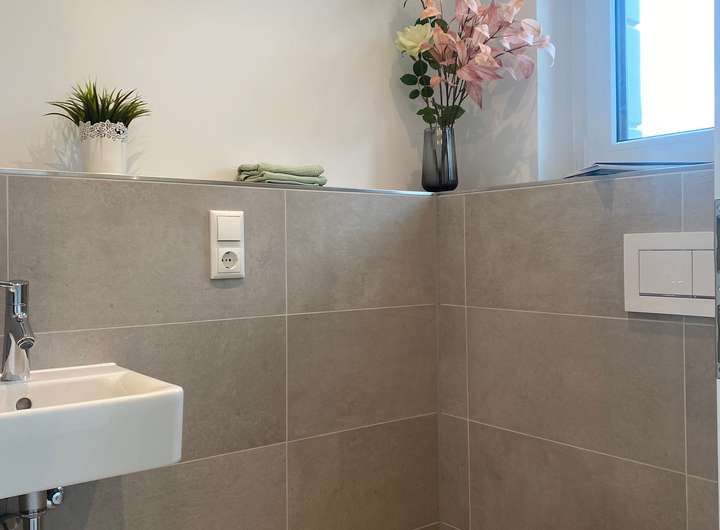 • Hochwertige Fliesen im Format 60 x 30 cm in Küche, Diele, Bad und WC