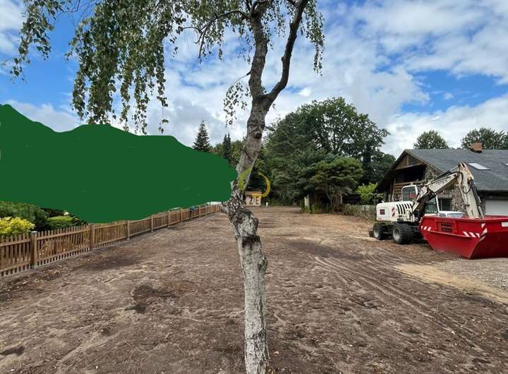 Dieses ruhig gelegene Grundstück bietet eine Gesamtfläche von ca. 1.121 m² und lädt zu einem Leben in Harmonie mit der Natur ein. Im vorderen Bereich des Grundstücks steht eine junge Birke, die für Schatten und eine natürliche Schönheit sorgt.