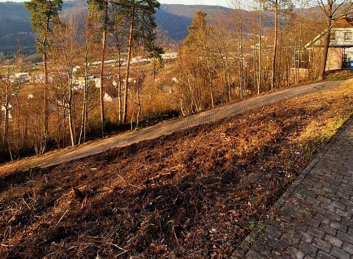 Ruhig. Grün. Großzügig. Dieses 689 m² große Hanggrundstück begeistert mit einer herrlichen Aussicht über die Wälder des Spessarts. Dank der erhöhten Lage genießen Sie zu jeder Jahreszeit ein besonderes Panorama – ideal für alle, die Naturnähe und gute Anbindung verbinden möchten.