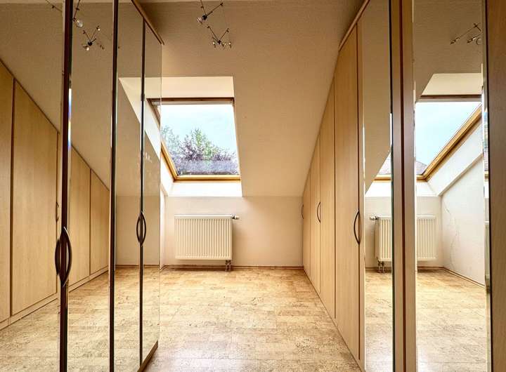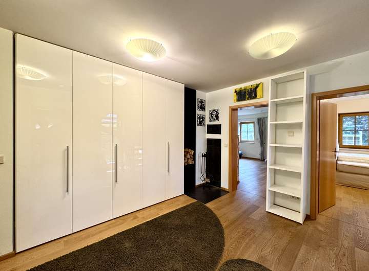Ankleidezimmer. Zwei Schlafräume sind über den großen Südbalkon