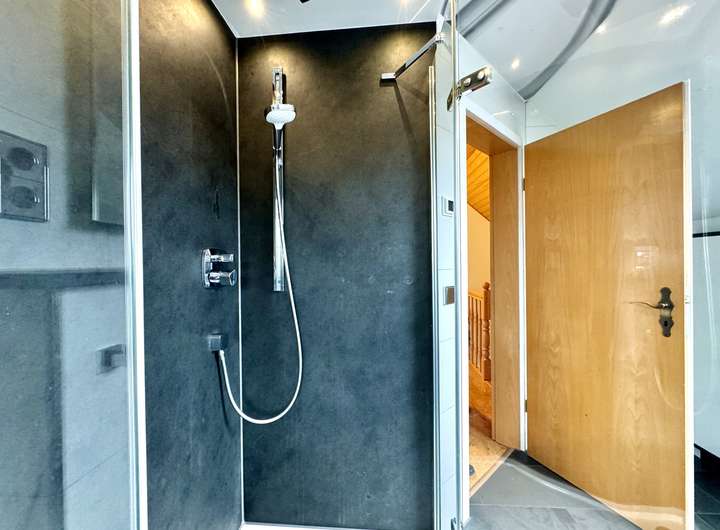 Dusche mit Duschkabine in Leichtmetall und Glastüre,