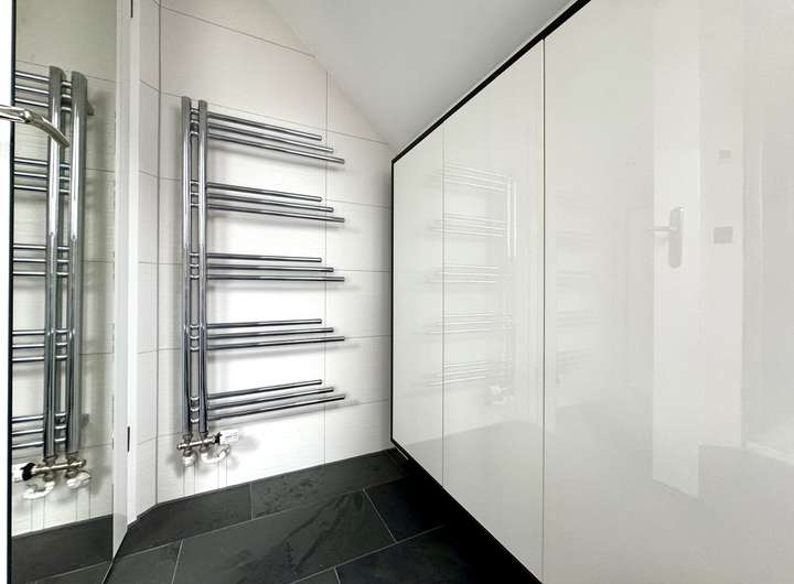 Im Ankleidezimmer ist ein maßangefertiger Spiegelschrank verbaut, der