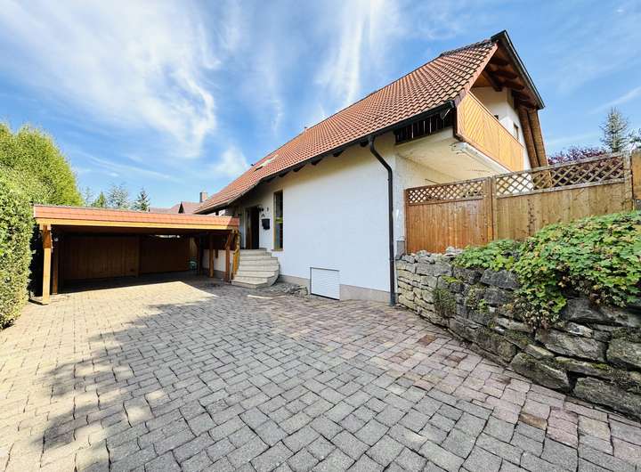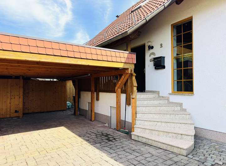 Carport und Außenstellfläche bieten Platz für sechs Autos. Der
