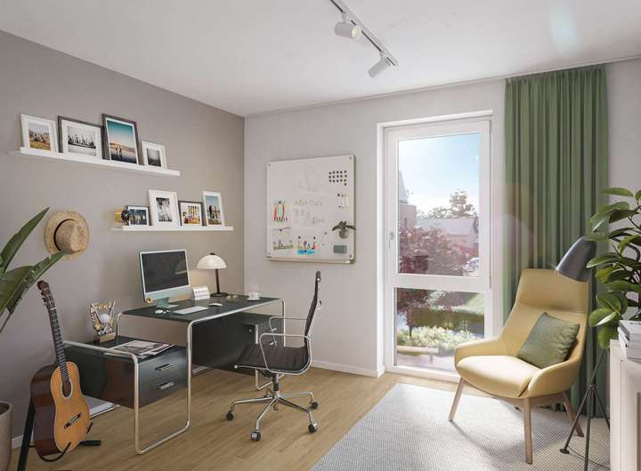 Was die Außenarchitektur der Häuser bereits zeigt, setzt sich in den Wohnungen fort – hochwertig, durchdacht und stilvoll. Energieeffiziente Fußbodenheizungen unter den Parkettböden sorgen für ein angenehm wohnliches Ambiente