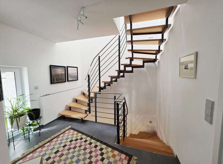 Das erste Wohnhaus, im Jahr 1900 errichtet, besticht durch seinen charmanten Charakter. Auf rund 120 m² verteilen sich sechs Zimmer, eine Küche, zwei Bäder sowie ein Gäste-WC. Es präsentiert sich in einem gepflegten Zustand und bietet zugleich viel Raum für Ihre persönlichen Gestaltungsideen.