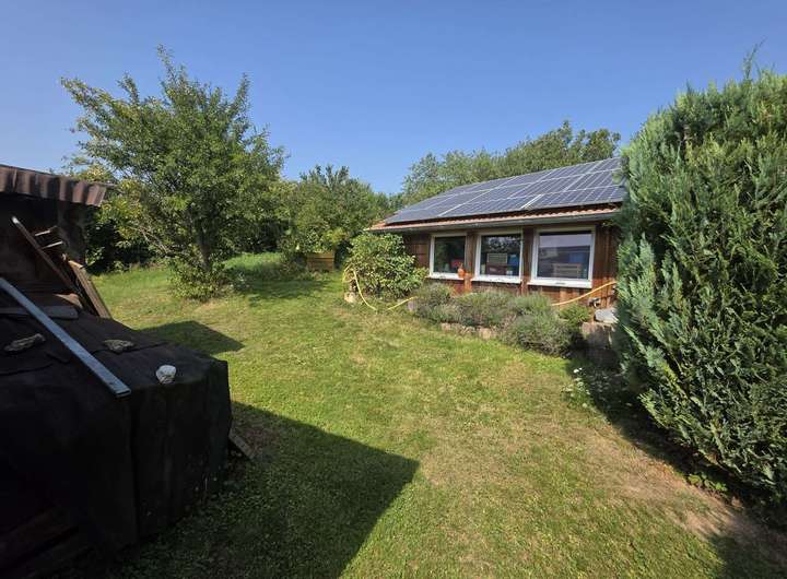 Genießen Sie entspannte Stunden im geschützten Terrassenbereich oder entdecken Sie den großen Garten, der gleichermaßen ein Paradies für Hobbygärtner wie für Kinder ist. Hier finden Sie Platz zum Spielen, Toben und Entspannen inmitten der Natur. Zwei geräumige Gartenhäuser mit Photovoltaikanlagen eröffnen zusätzliche Nutzungsmöglichkeiten, und dank der beiden Außenstellplätze parken Sie Ihre Fahrzeuge jederzeit bequem direkt am Haus.