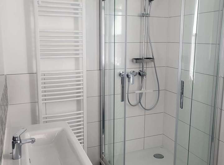 Das Gebäude umfasst insgesamt drei in sich geschlossene Einheiten: Im EG und OG befindet sich jeweils eine Dreizimmerwohnung mit einer Küche und einem Badezimmer („3-ZKB“), im OG mit eindrucksvollem terrassenartigen Balkon. Die DG -Wohnung ist als klassisches Single-Appartment gestaltet und ist in zwei Räume unterteilt, einer davon mit abgetrennter Mini-Küche. Treppenhaus und Wohnungen bestechen beim ersten Betreten durch die unerwartet hochwertige Ausstattung. Denn das ursprünglich Ende des 19. Jahrhunderts errichtete Gebäude (genaues Bj. Ist nicht bekannt) wurde zwischen 2011 und 2023 hochwertig saniert bzw. modernisiert (Dach, Außenwanddämmung, Außentüren, Fenster und Innentüren, Böden, Treppen, Leitungen, Heizanlage, drei Bäder); eine Liste über den Umfang und den Zeitpunkt der jeweiligen Sanierung stellen wir Ihnen gern im Rahmen einer Innenbesichtigung zur Verfügung. Im Hof/Garten befinden sich vier Garagen, von denen eine als geräumige Werkstatt genutzt wurde.