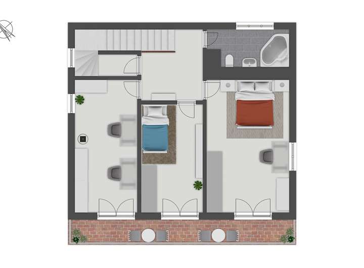 - Obergeschoss mit Südbalkon über gesamte Hausbreite