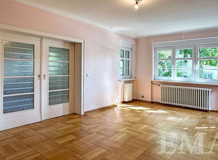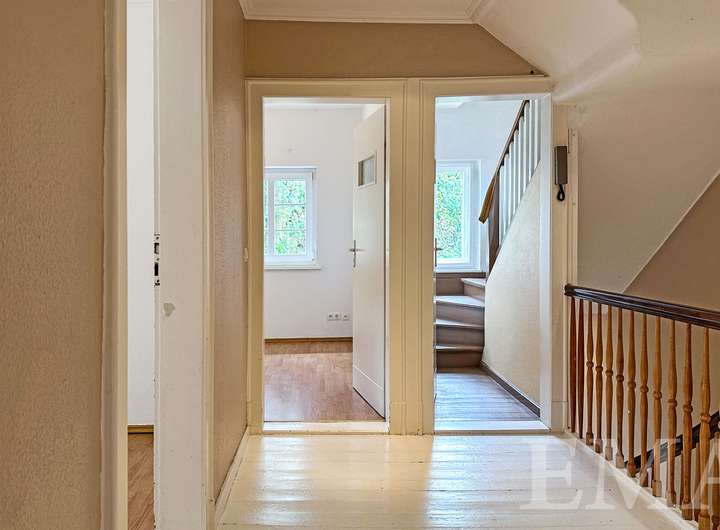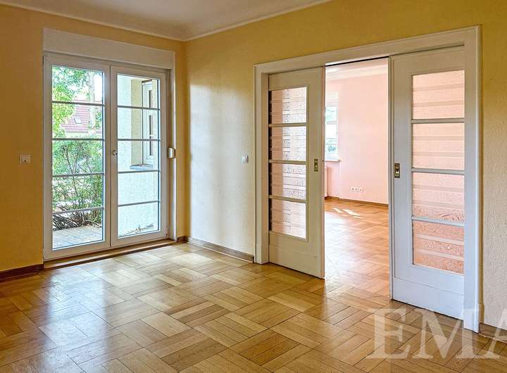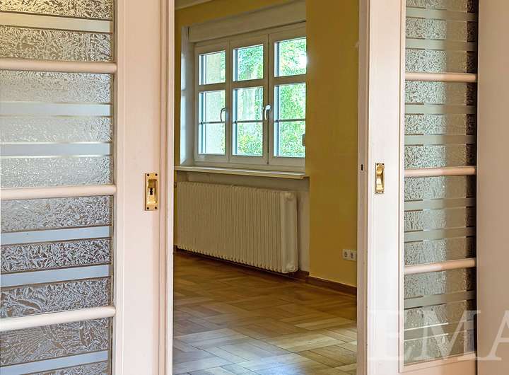 - Innentüren und Schachbrettparkett im Erdgeschoss im Original erhalten