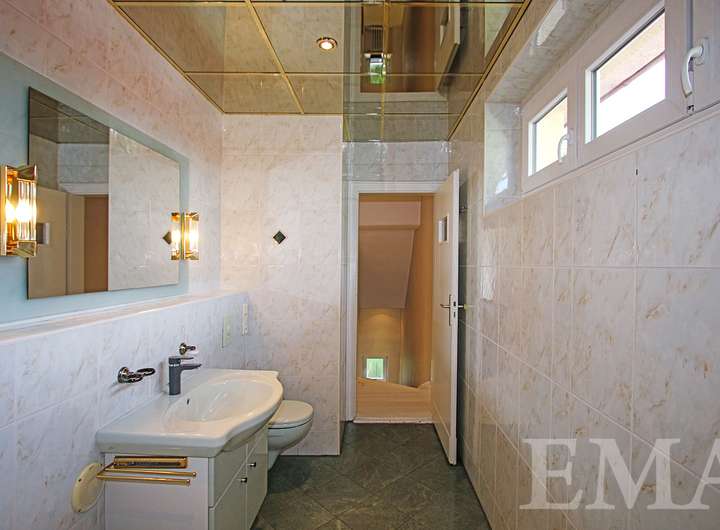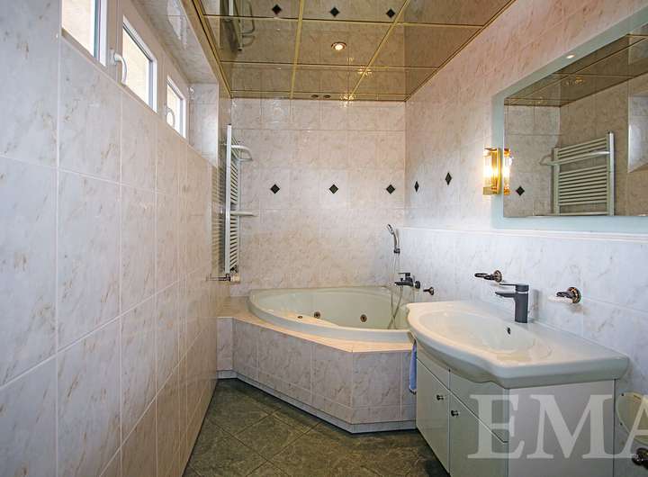 - großes Marmorbadezimmer im Obergeschoss mit Eckbadewanne