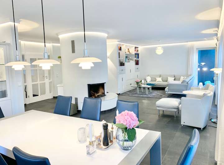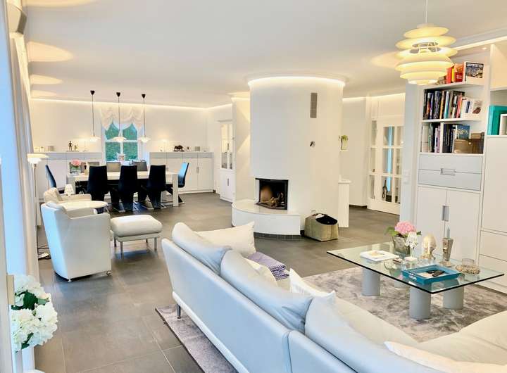 Absolut ruhig in einer Privatstraße gelegen, präsentiert sich das geschmackvolle, top sanierte und freistehende Einfamilienhaus, mit seinen charakteristischen weißen Holzsprossenfenstern und grünen Klappläden, Säulen am Hauseingang, mit 5 Schlafzimmern, Ankleidezimmer, 3 Bädern, Sauna, Whirlpool, offenem Kamin, ganzjährig nutzbarem Wintergarten und eingewachsenem Garten mit Südwestausrichtung im gehobenen Luxussegment auf einer Wohnfläche von 260,89 m² bei einer Grundstückfläche von 600,58 m² inkl. 3 Stellplätzen.