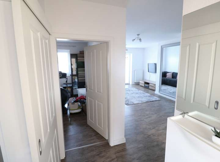 Wohneinheit 1 (ca. 58,10 m² Wfl.): Erdgeschoss rechts: Eingangsbereich mit Wohnzi., Küche mit Einbauküche, anliegendem Abstell-/Heizraum, Bad, 2x Schlafraum, Terrasse Nebenflächen: Pkw-Einstellplatz, Kellerraum Kaltmiete*: 480,00 EUR/Monat + Betriebskosten Wohneinheit 2 (ca. 58,10 m² Wfl.): Erdgeschoss links: Eingangsbereich mit Wohnzi., Küche mit Einbauküche, anliegendem Abstell-/Heizraum, Bad, 2x Schlafraum, Terrasse Nebenflächen: Pkw-Einstellplatz, Kellerraum Kaltmiete*: 460,00 EUR/Monat + Betriebskosten Wohneinheit 3 (ca. 59,40 m² Wfl.) Obergeschoss rechts: Eingangsbereich mit Wohnzi., Küche mit Einbauküche, anliegendem Abstell-/Heizraum, Bad, 2x Schlafraum, Balkonterrasse Nebenflächen: Pkw-Einstellplatz, Kellerraum Kaltmiete*: 420,00 EUR/Monat + Betriebskosten Wohneinheit 4 (ca. 59,40 m² Wfl.) Obergeschoss links: Eingangsbereich mit Wohnzi., Küche mit Einbauküche, anliegendem Abstell-/Heizraum, Bad, 2x Schlafraum, Balkonterrasse Nebenflächen: Pkw-Einstellplatz, Kellerraum Kaltmiete*: 420,00 EUR/Monat + Betriebskosten Wohneinheit 5 (ca. 95,00 m² Wfl.) Penthouse: Eingangsbereich mit große Wohnzi. sowie offenem Küchenbereich (Einbauküche vorhanden), Abstell-/Heizraum, Wirtschaftstraum, Bad, 2x Schlafraum, 2x Dachterrasse Nebenflächen: Pkw-Einstellplatz, Kellerraum Kaltmiete*: 610,00 EUR/Monat + Betriebskosten Nutzflächen: Hausanschluss-/Fahrrad-/Geräteraum