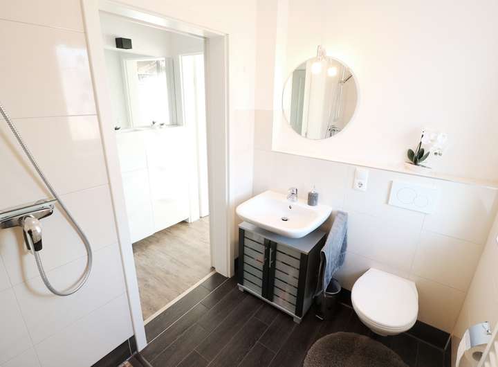 - Eigentumswohnanlage mit 5 Wohneinheiten - KfW70-Standard - massives, zweischaliges Mauerwerk - dunkle Verblendmauerstein - heller Außenputz - dunkles Tonziegeldach - Zinkdachrinnen - Zinkverkleidungen - dunkle Kunststofffenster (innen weiß) - moderne Dreifachverglasung - hochwertiges, dunkles Kunststoffhauseingangstür - weiße Zimmertüren - Einbauküchen - je Wohneinheit im Erdgeschoss eine gepflasterte Terrasse mit Gartenteil - je Wohneinheit im Obergeschoss Balkon - Penthouse mit Dachterrasse - moderne Gaszentralheizungen - weiße Wandheizkörper - Fußbodenerwärmung - Energiebedarfsausweis in Bearbeitung! - Endenergiebedarf: --,- kWh/(m²a) - Energieeffizienzklasse: - - Energieträger: Gas - Gebäudebaujahr: - - massive Geschosstreppen mit Fliesenbelag - massives Geschossdecken (Beton) - moderne Bäder mit bodentiefen, gefliesten Duschanlagen - helle Sanitärobjekte - Wohnungen sind vermietet - Kaltmieten im Jahr: 28.680,00 EUR zzgl. Betriebskosten! - gepflasterte Pkw-Stellplätze und Zuwegungen - gepflegte Gartenanlage - Einfriedungen vorhanden - massiver Fahrrad-/Geräteraum