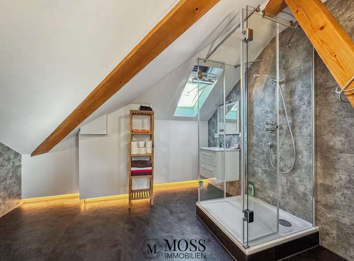 mit Glasdusche rundet das Dachgeschoss ab. Grundsätzlich ermöglichen die Räumlichkeiten